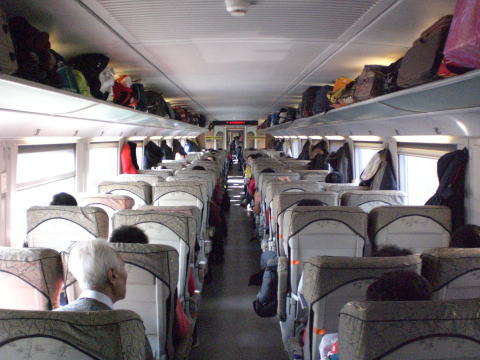車内は、最大傾斜角40度のリクライニング機構付きオール軟座で、食堂車やバー車はないものの5号車には売店が設置されている。また分散型空調装置、真空フラッシュ式トイレ、プラグドアや自動折りたたみ式ステップなど様々な最新機能を盛り込んでいる。