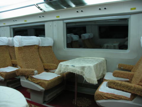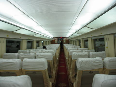 一等座車 車内 画像提供 伊藤様 一等軟座車車内。座席配置は通路を挟んで2+2。