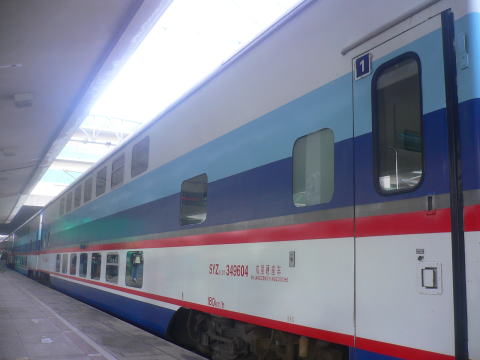 双層硬座車 SYZ25DT 349604 ハルピン駅 動力車に挟まれて使用される「キサハ」相当の二階建て硬座客車。