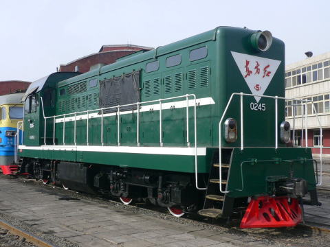 東方紅5型は、東方紅2型をベースにやや大型化して、その分出力も最高速度も向上し、入換の他、本線での小運転にも使用できるようにした機関車だ。車体は緑色ベースに白帯という東方紅2型と同一色に塗られていて、両者とも見た目は似ているが、東方紅2型がエンドキャブを採用しているのに対して東方紅5型はセミエンドキャブを採用している点から区別ができる。