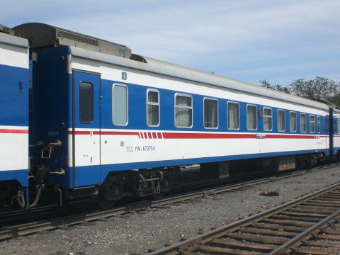 硬臥車 YW18 668416 北京機務段 C世代車は現在の18系客車の中核をなす車両で、その大半は1995年に輸入されたドイツ・DWA社製の旧共産圏用標準客車で構成されています。現在は全車北京局に所属して、モンゴル・ロシア行きの国際列車を中心に使用されていますが、未だに石炭ストーブの非空調車で最高速度も120km/h対応と遅く、国内の特急列車のみならず、新型車に置き換えられた乗り入れ先のロシア持ち、モンゴル持ちの客車との格差も広がっているため、近い将来の置き換えが予想されます。