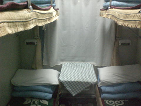 硬臥車コンパートメント内。他の18系客車同様、硬臥ながら二段式寝台をとなっています。