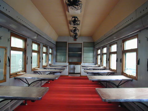 写真は鉄道博物館の館内に保存されているA世代の食堂車です。