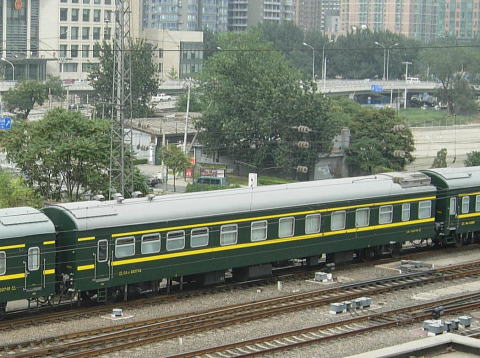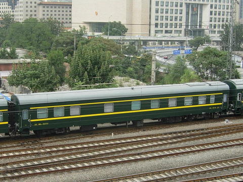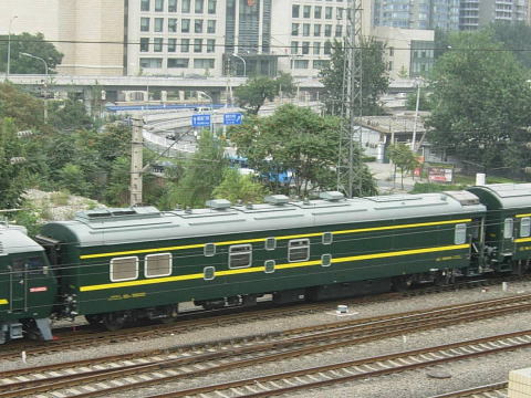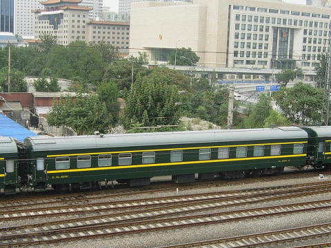 伝統的なダークグリ−ンの客車でいえば最下層にあたる22系客車と同じ車体色を身にまといつつも、薄汚れた22系客車とは比べ物にならないほどピカピカに磨き上げられたその車体。サロン室やシャワー室を備えた豪華な車内設備は、建前はどうあれ現実は「中国は厳然とした階級社会である」ということを存分に知らしめてくれる存在です。