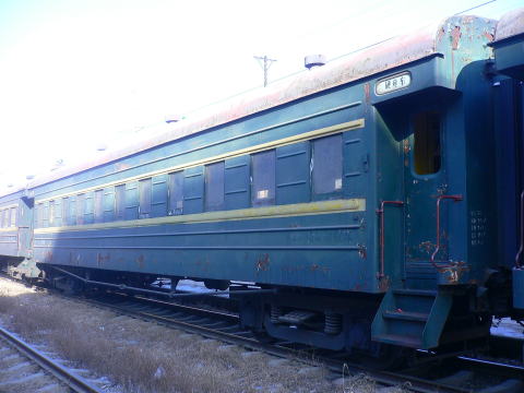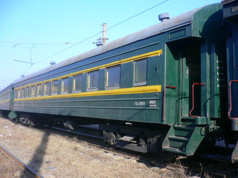 硬座車 YZ30 29512 双鴨山砿務局専用線 客運段(画像提供 ボーゲン様) 双鴨山礦務局双鴨山砿務局で使用される客車です。YZ22形の車内のクロスシートを撤去。中央に手動の両開き扉を取り付けたものです。編成の一端に1両だけ連結され、荷物車(行商専用車?)代用として使用されています。