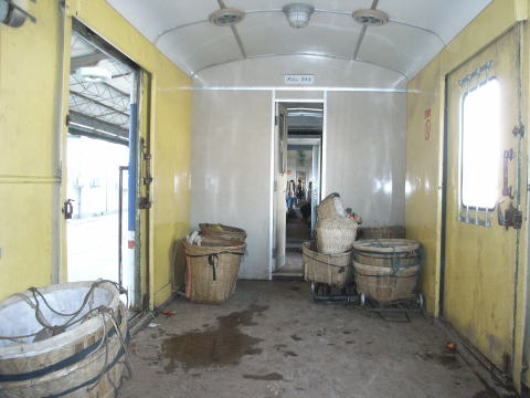 現在は本来の使われ方ではなく、行商人の荷物置き場として使用されている模様。郵便荷物合造車 XU30 車内