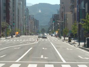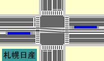 大通公園を横断する国道230号線石山通り。架空世界では、石山通りはここでは地下に潜っています。ちょうど、このあたりに裁判所前電停があると想定。写真A